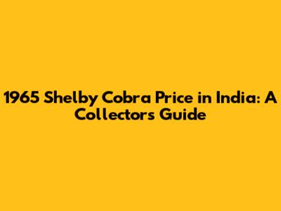 1965 Shelby Cobra Price In India: A Collector's Guide