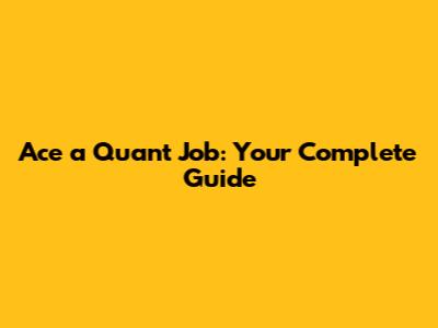 Ace A Quant Job: Your Complete Guide