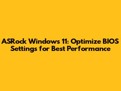 ASRock Windows 11: Optimize BIOS Settings For Best Performance