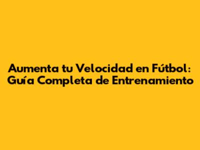 Aumenta Tu Velocidad En Fútbol: Guía Completa De Entrenamiento