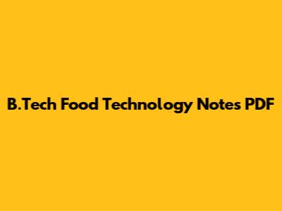 B.Tech Food Technology Notes: PDF Download