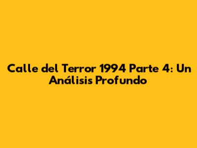 Calle Del Terror 1994 Parte 4: Un Análisis Profundo