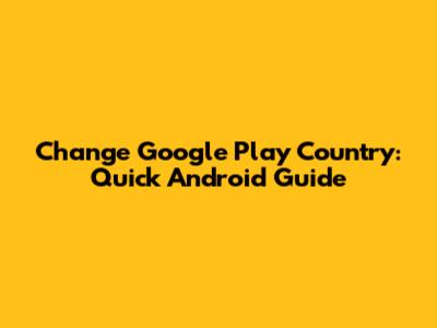Change Google Play Country: Quick Android Guide