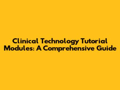 Clinical Technology Tutorial Modules: A Comprehensive Guide