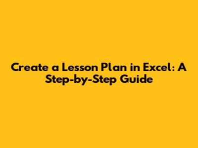 Create A Lesson Plan In Excel: A Step-by-Step Guide