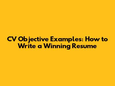 CV Objective Examples: How To Write A Winning Resume