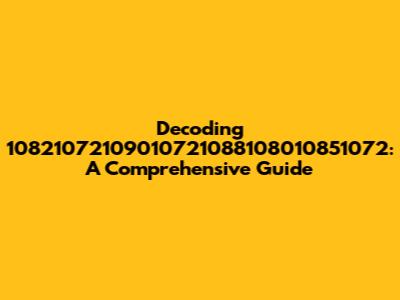 Decoding 10821072109010721088108010851072: A Comprehensive Guide