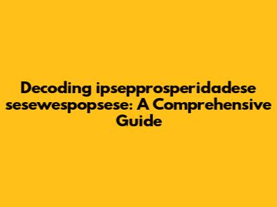 Decoding Ipsepprosperidadese Sesewespopsese: A Comprehensive Guide