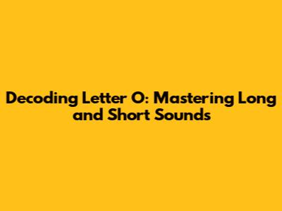 Decoding Letter O: Mastering Long And Short Sounds