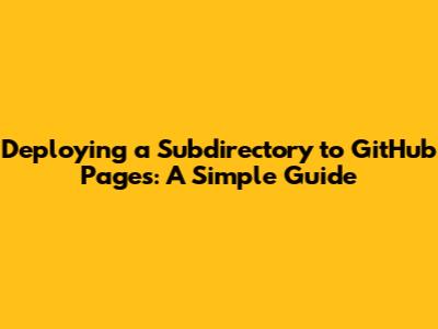 Deploy Subdirectory To GitHub Pages: A Simple Guide