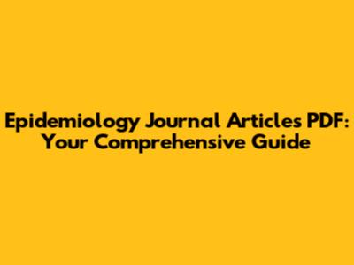 Epidemiology Research: Journal Articles PDF