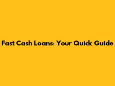 Fast Cash Loans: Your Quick Guide