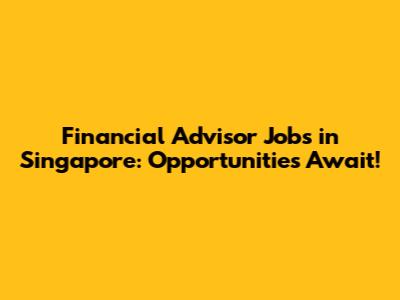 Financial Advisor Jobs In Singapore: Opportunities Await!
