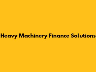 Heavy Machinery Finance Solutions