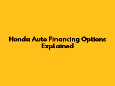 Honda Auto Financing Options Explained