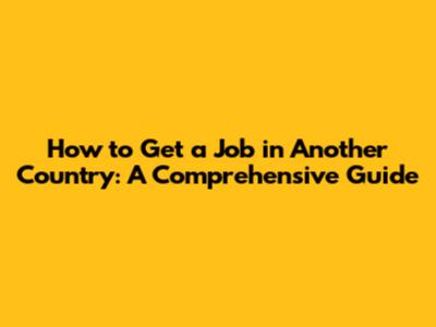 How To Get A Job In Another Country: A Comprehensive Guide