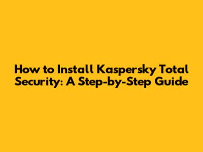 How To Install Kaspersky Total Security: A Step-by-Step Guide