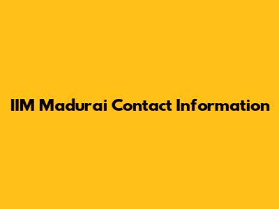 IIM Madurai Contact Information