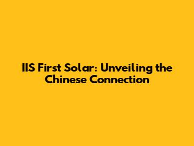 IIS First Solar: The Chinese Connection?