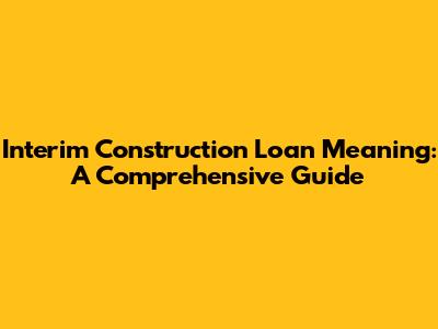 What is an Interim Construction Loan?