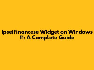 Ipseifinancese Widget On Windows 11: A Complete Guide