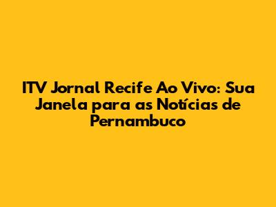 ITV Jornal Recife Ao Vivo: Notícias E Cobertura