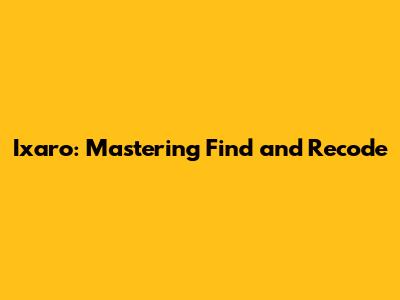 Ixaro: Mastering Find And Recode