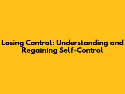Losing Control: Understanding And Regaining Self-Control