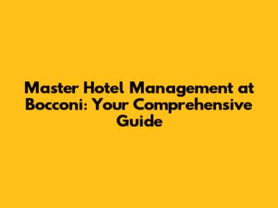 Master Hotel Management At Bocconi: Your Guide