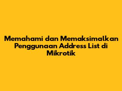 Address List Mikrotik adalah fitur yang sangat powerful dan serbaguna. Dengan memahami cara kerjanya dan bagaimana menggunakannya, kamu bisa mengoptimalkan kinerja jaringanmu, meningkatkan keamanan, dan mempermudah pengelolaan jaringan. Jangan ragu untuk bereksperimen dan mencoba berbagai konfigurasi. Semakin kamu memahami fitur ini, semakin kamu bisa memanfaatkannya untuk kebutuhan jaringanmu.