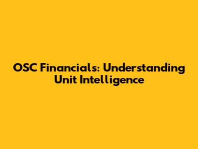 OSC Financials: Understanding Unit Intelligence