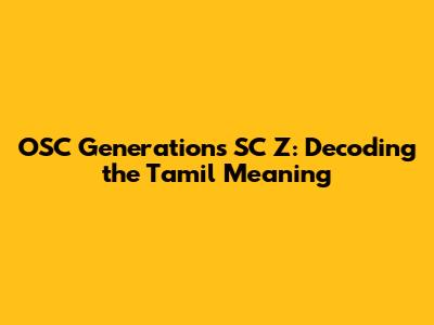 OSC Generations SC Z: Decoding The Tamil Meaning