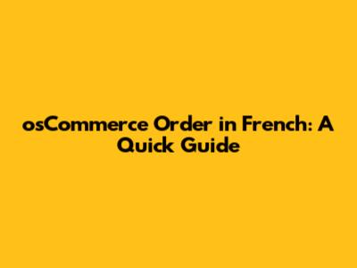 OsCommerce Order In French: A Quick Guide