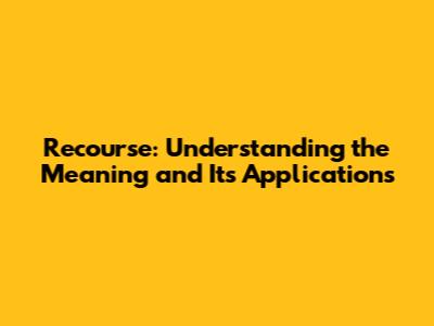 Recourse: Understanding The Meaning And Its Applications