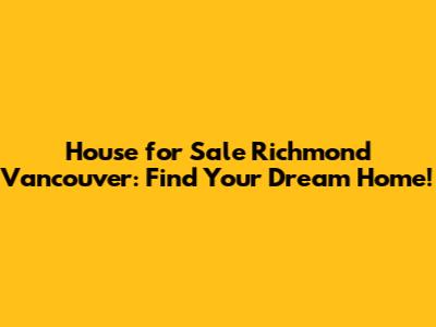 Richmond & Vancouver Houses For Sale: Find Your Dream Home!