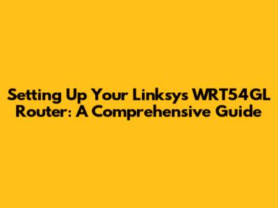 Setting Up Your Linksys WRT54GL Router: A Comprehensive Guide