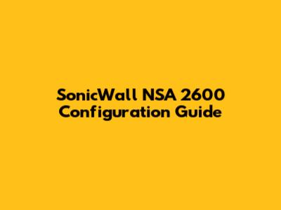 SonicWall NSA 2600: Configuration Guide