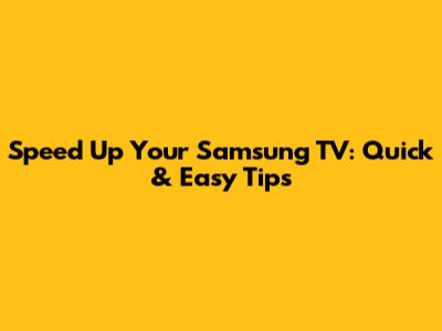 Speed Up Your Samsung TV: Quick & Easy Tips