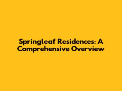Springleaf Residences: A Comprehensive Overview