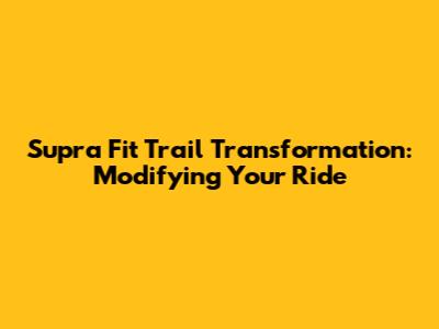 Supra Fit Trail Transformation: Modifying Your Ride