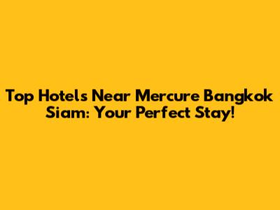 Top Hotels Near Mercure Bangkok Siam: Your Perfect Stay!