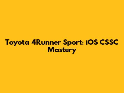 Toyota 4Runner Sport: IOS CSSC Mastery