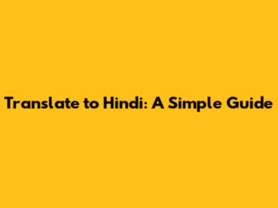 Translate To Hindi: A Simple Guide
