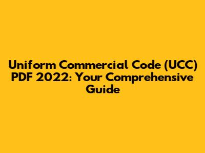 Hey guys! Are you looking for the Uniform Commercial Code (UCC) PDF 2022? You've landed in the right spot. This guide will provide you with everything you need to know about the UCC, its importance, where to find the PDF version for 2022, and how it impacts various commercial transactions. So, let's dive right in!