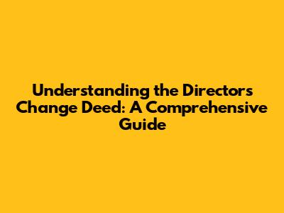 Understanding The Director's Change Deed: A Comprehensive Guide