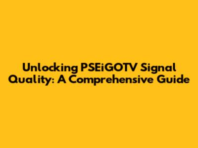 Unlocking PSEiGOTV Signal Quality: A Comprehensive Guide