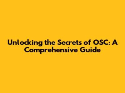 Unlocking The Secrets Of OSC: A Comprehensive Guide