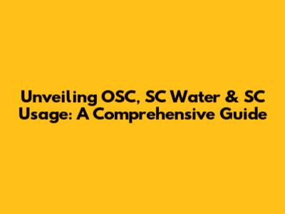 Unveiling OSC, SC Water & SC Usage: A Comprehensive Guide