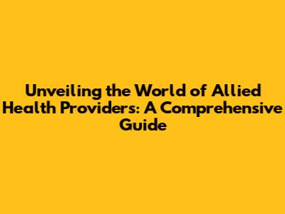 Unveiling The World Of Allied Health Providers: A Comprehensive Guide
