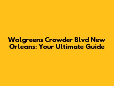 Walgreens On Crowder Blvd, New Orleans: Your Local Pharmacy Guide